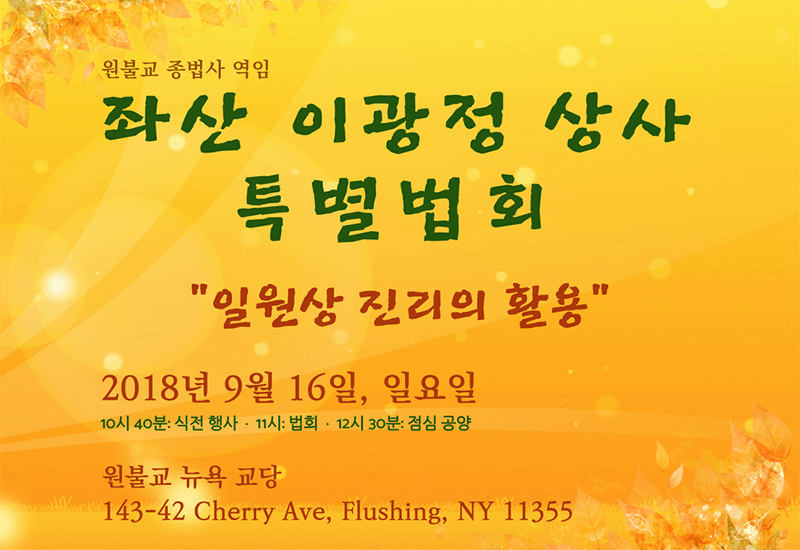 2018년 9월 16일 일요일 @원불교 뉴욕 교당
